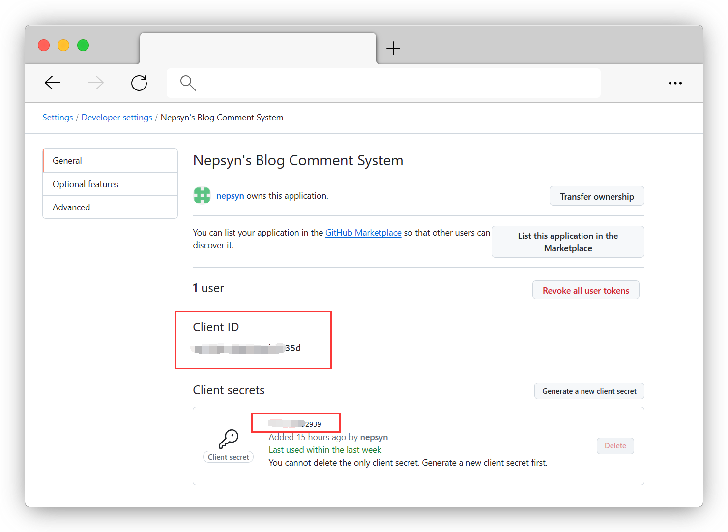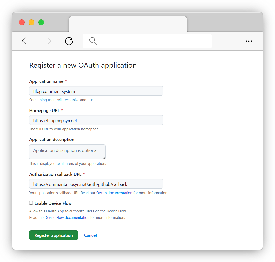 两个信息,在 Remark42 启用 GitHub 验证方式时会用到。